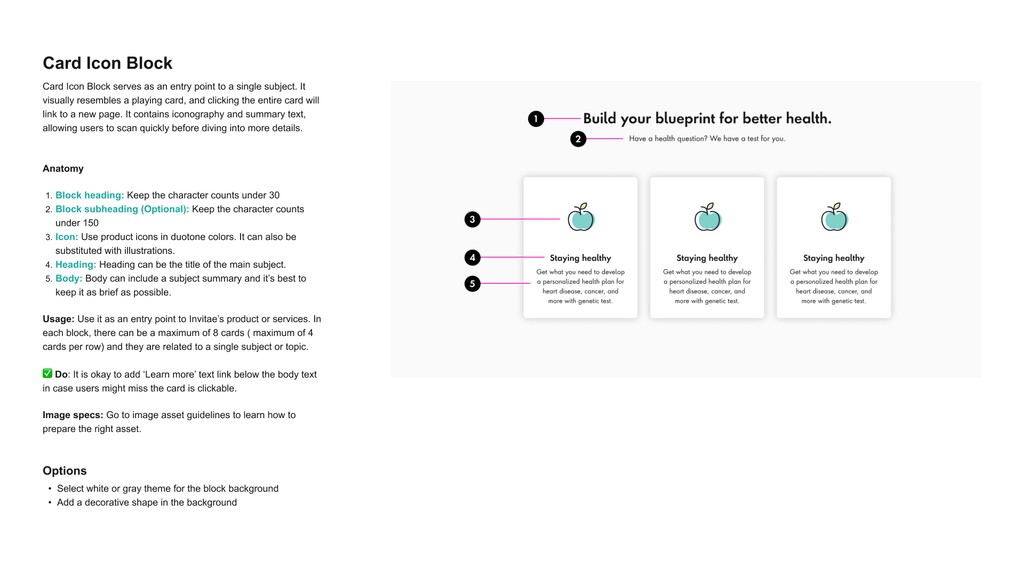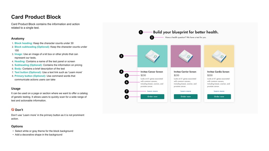 To help Invitae’s marketing and product teams move faster without relying on Engineering, we built a modular content model and moved to a CMS workflow. This let teams manage and publish pages independently, with templates and guidance to support quick iteration and maintain design consistency.